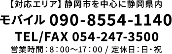 対応エリアは、静岡市を中心とした静岡県全域です。